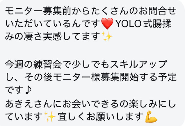 この経験から、私は「YOLO式腸もみ」は単なる技術ではなく、人生を変える力を持つものだと確信。